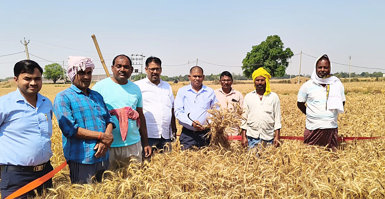 नावानगर में गेहूं की कटनी का सफल प्रयोग, प्रति हेक्टेयर 48 क्विंटल पैदावार का अनुमान